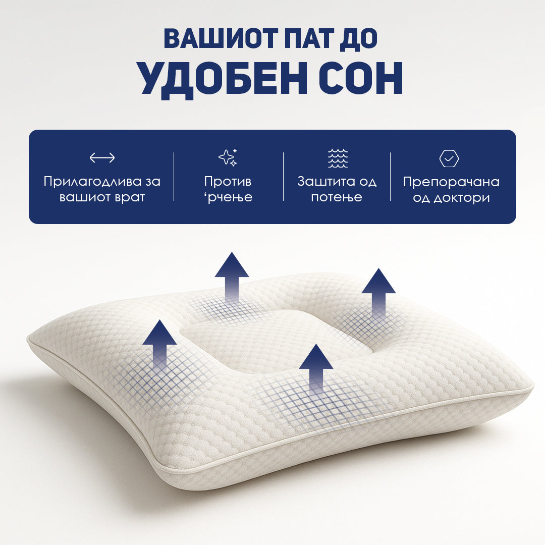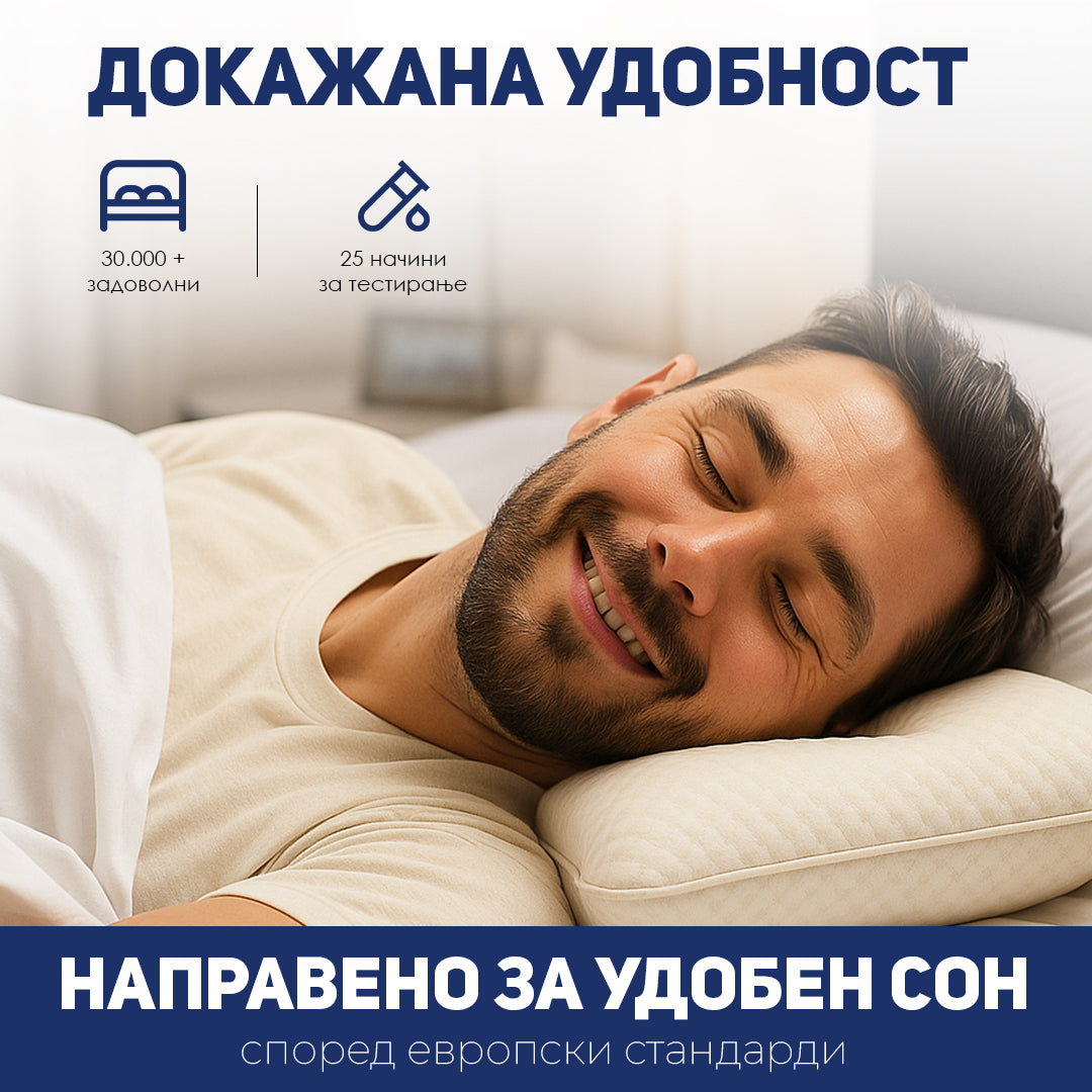 Перницата се приспособува на вашата глава и врат, нудејќи природна поддршка и удобност во секоја положба на спиење.